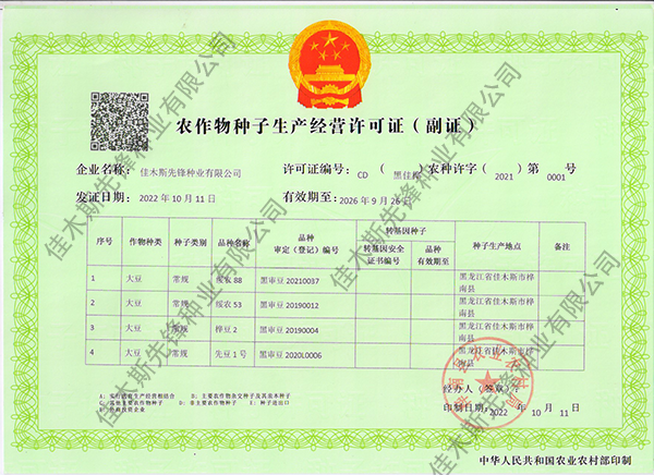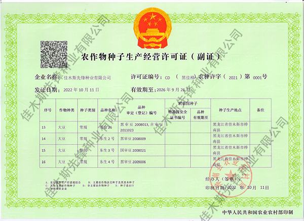走進我們 COME INTO US 您現(xiàn)在的位置:網(wǎng)站首頁 > 走進我們 >資質榮譽 公司簡介 企業(yè)文化 領導致辭 資質榮譽 農(nóng)作物種子生產(chǎn)經(jīng)營許可證(副證) 農(nóng)作物種子生產(chǎn)經(jīng)營許可證(副證) 農(nóng)作物種子生產(chǎn)經(jīng)營許可證(副證) 黑農(nóng)48省農(nóng)作物品種合格證書 黑農(nóng)48植物新品種權證書 綏農(nóng)26植物新品種權證書 共32條記錄 當前為第2頁/共6頁上一頁1234...6下一頁